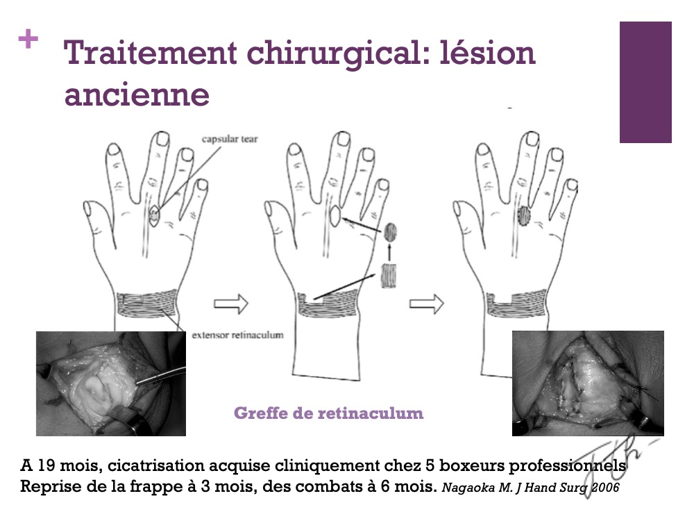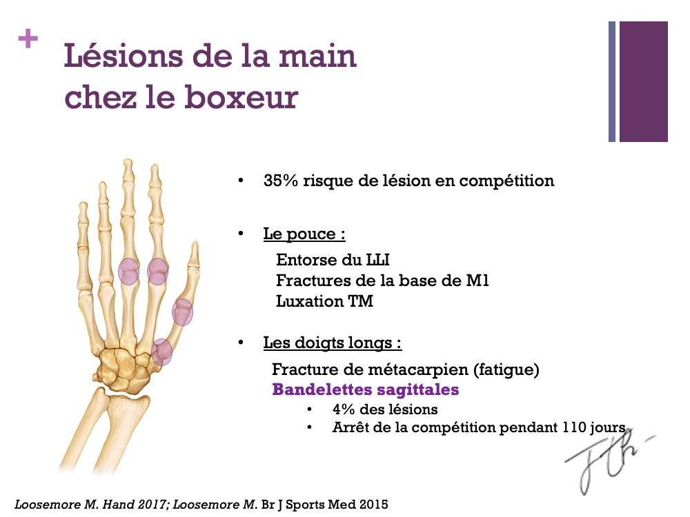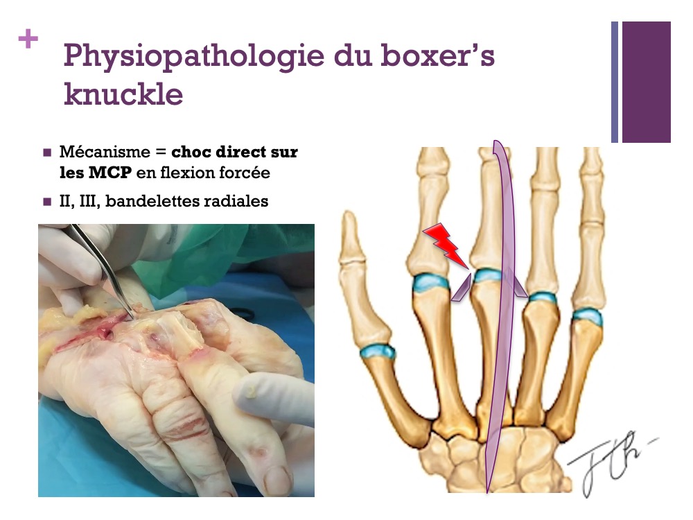 Les bandelettes sagittales constituent les principaux stabilisateurs de l’appareil extenseur au dos de la main. Leur lésion, également appelée « Boxer Knuckle », est souvent sous-diagnostiquée en raison de symptômes peu spécifiques. Il s’agit pourtant d’une atteinte fréquente, en particulier chez les sportifs pratiquant des disciplines de frappe comme la boxe.