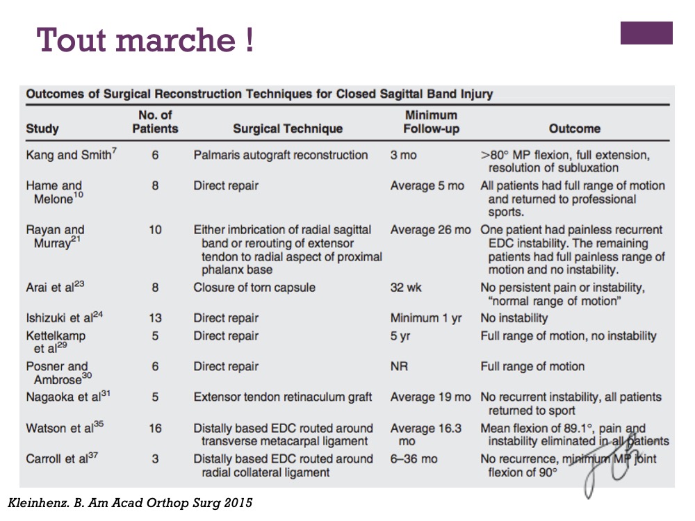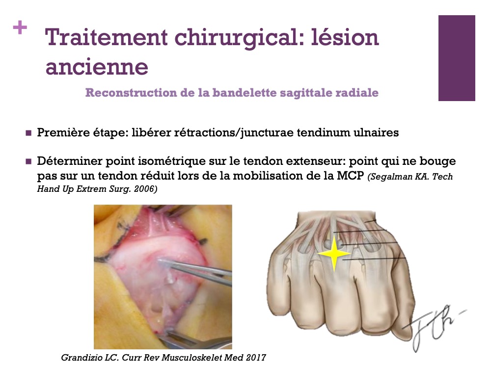 Dans ce cadre, nous avons eu l’opportunité de partager notre expérience et nos connaissances à l’occasion du « Cours Européen Numérique de Chirurgie du Membre Supérieur » – édition 2019. Ce congrès était organisé par l’EFORT, le Collège Français des Chirurgiens Orthopédistes et Traumatologues, le Collège Français des Enseignants en Chirurgie de la Main, ainsi que par le Groupe d’Avancement de la Microchirurgie. Notre présentation portait sur les lésions des bandelettes sagittales chez le sportif.