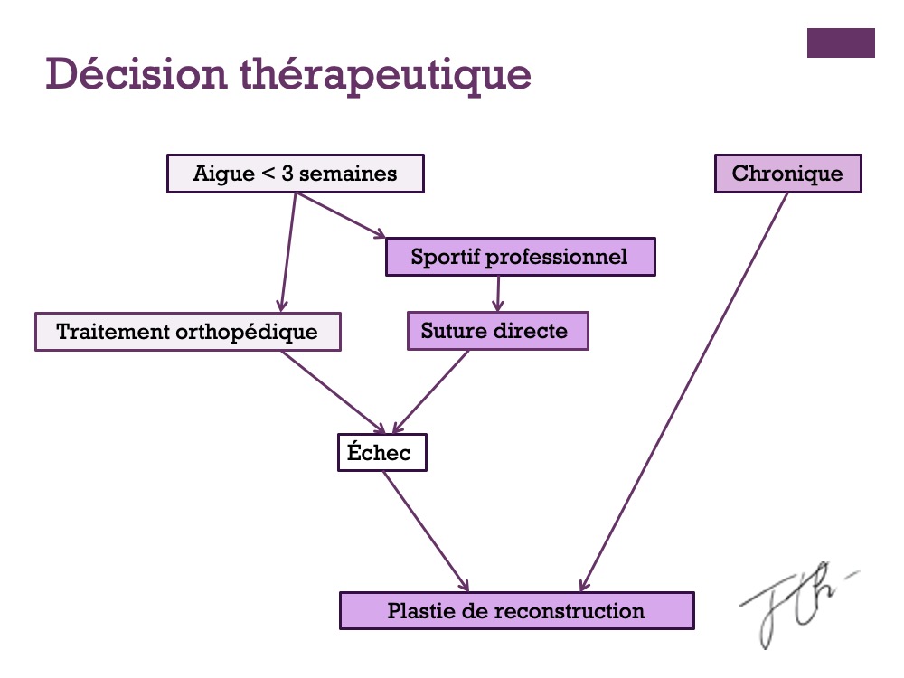 Le diagnostic de cette pathologie reste difficile et nécessite une évaluation clinique minutieuse, souvent complétée par une imagerie ciblée. Le traitement, quant à lui, reste aujourd’hui encore peu standardisé, oscillant entre prise en charge conservatrice et recours à la chirurgie en cas d’instabilité persistante.